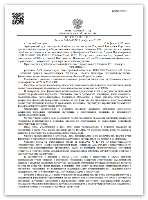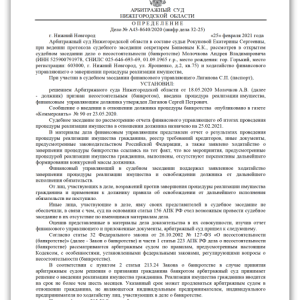 УСТАНОВИЛ:решением Арбитражного суда Нижегородской области от 18.05.2020 Молочков А.В. (далее
